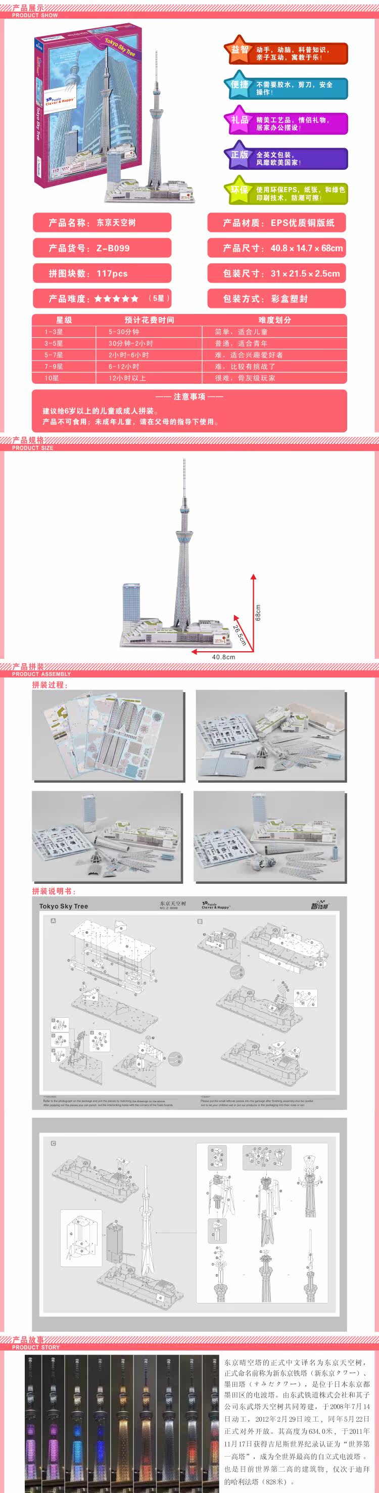 3D головоломка умный и счастливый Бумажная модель для сборки Сделай Сам игрушка токийское небо дерево знаменитое здание подарок на день рождения 1 шт