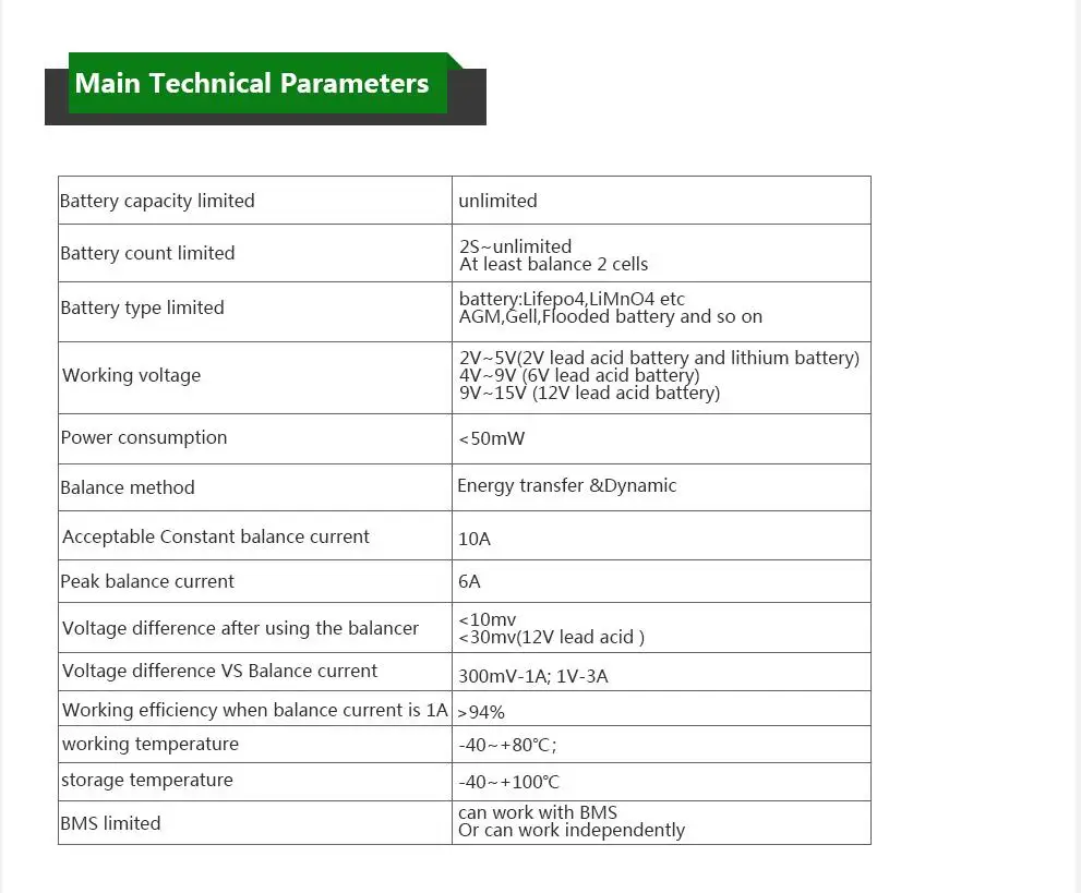 2. Нет ограничений для мощности, действителен для 1000AH +.