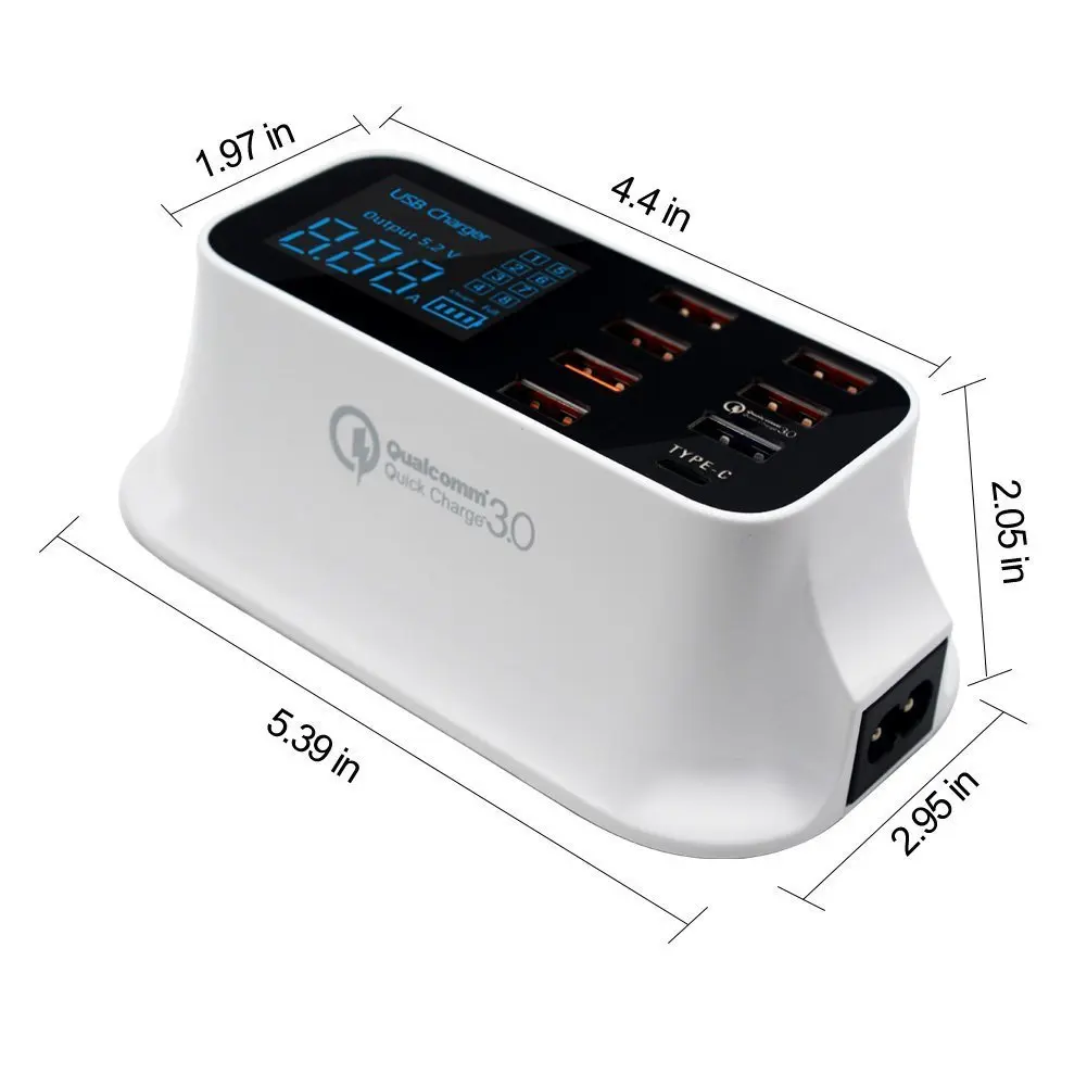 Несколько зарядных устройств USB с умным светодиодный-экраном, чтобы показать состояние зарядки каждого usb-порта просто и интуитивно светодиодный экран для отображения состояния зарядки каждого usb-порта и портов Type-C просто и интуитивно.