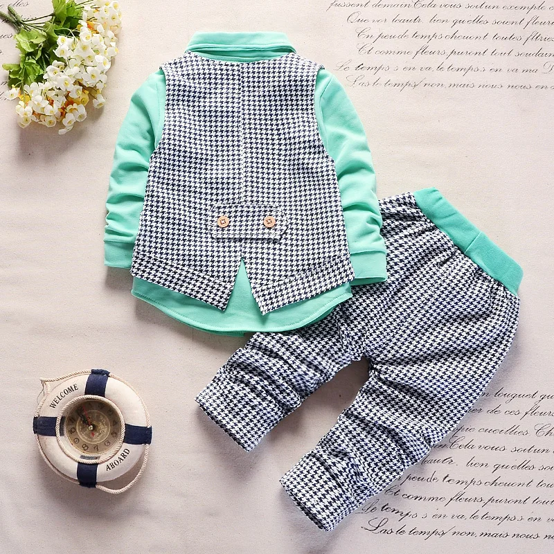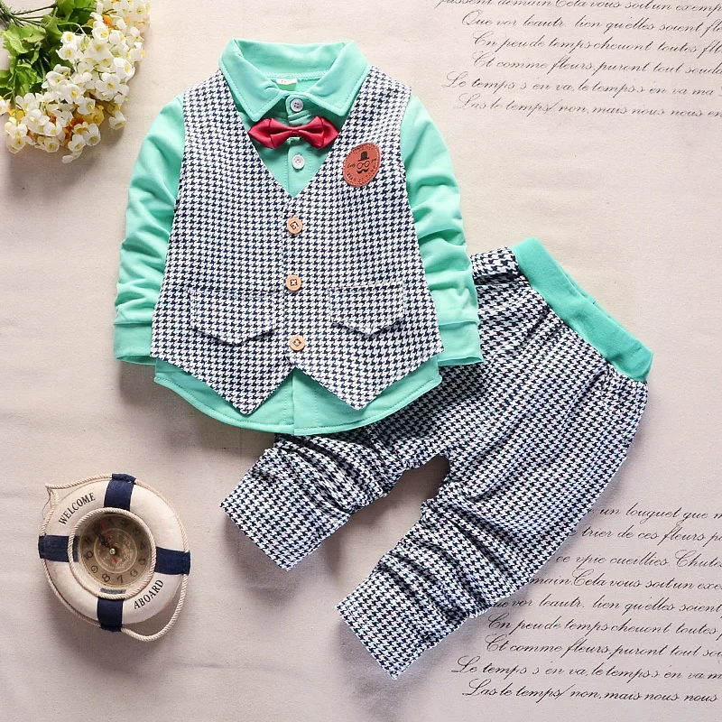 Новая детская одежда весенне-осенний хлопковый жилет для мальчиков рубашка с длинными рукавами и штаны повседневные Костюмы джентльмена из 3 предметов с галстуком-бабочкойОдежда для младенцев от 0 до 4 лет