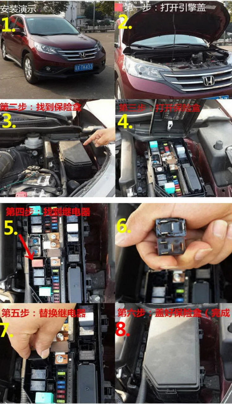 1. Откройте релейную коробку, чтобы проверить расположение реле и узнать Оригинальное реле топливного насоса, которое имеет тот же контактный рисунок с нашим беспроводным реле.