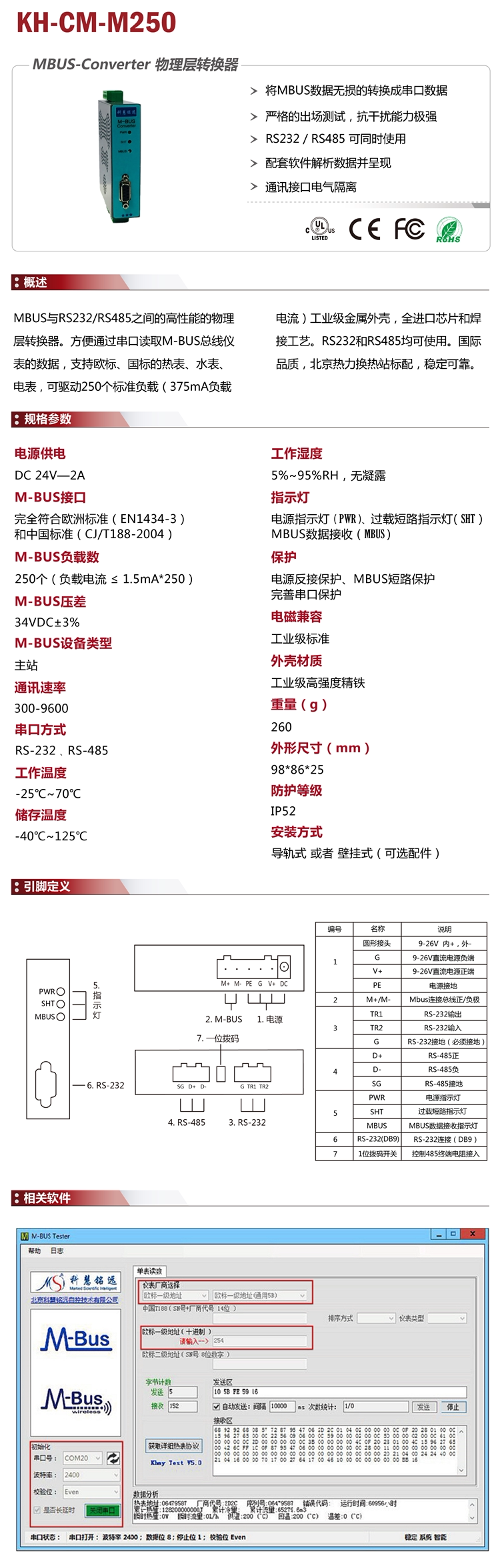 Высокая производительность физический слой конвертер между MBUS и RS232/RS485. Удобно считывать данные M-BUS прибора шины через последовательный порт, поддержка европейского стандарта, национального стандарта Счетчика Горячей Воды, счетчика воды и счетчика, может управлять 250 стандартной нагрузкой (375mA нагрузочный ток) промышленный металлический корпус, можно использовать все импортные чипы и сварочный процесс RS232 и RS485. Международное качество, стандарт Пекинской Теплообменной станции, стабильный и надежный.