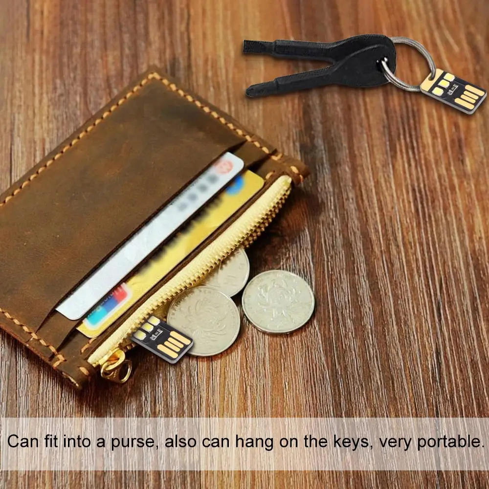 Может поместиться в кошелек, также можно повесить на ключи, очень портативный.