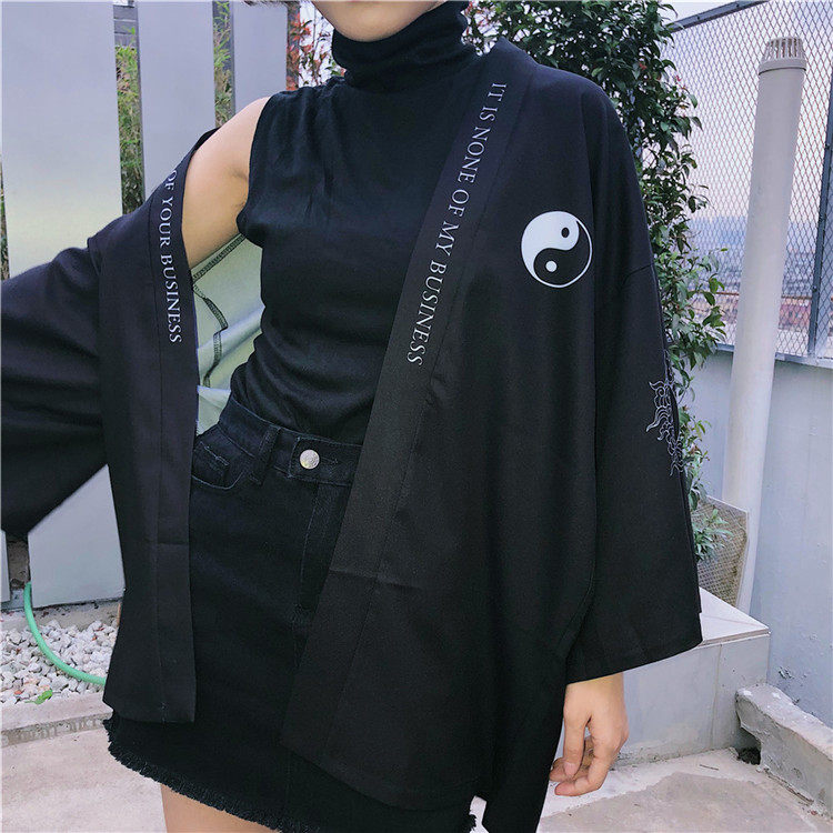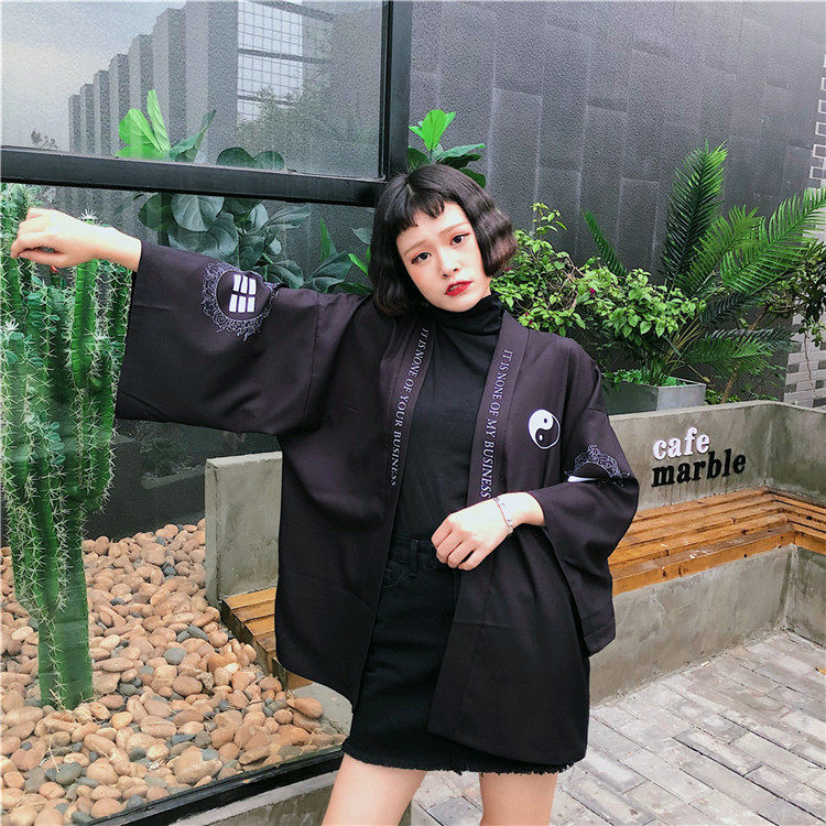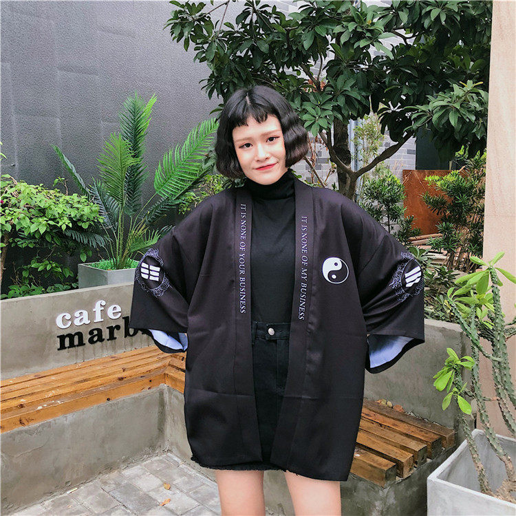 Харадзюку цифр печати 2018 Лето кимоно кардиган feminino Верхняя одежда Защита от солнца рубашки женские