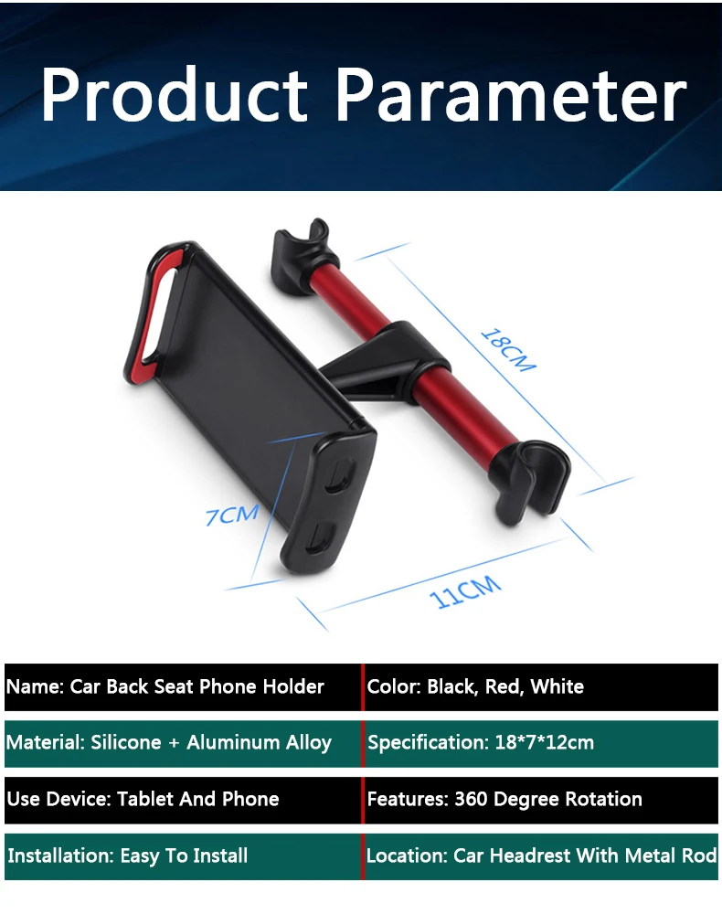 QHCP Автомобильный держатель для телефона на заднее сиденье на 360 градусов, подставка, подголовник, кронштейн, поддержка для iPad, планшета, ПК, Mini Pro, аксессуары для интерьера
