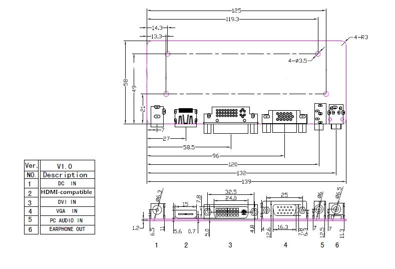3. Размеры печатной платыПлаты ЖК-контроллера