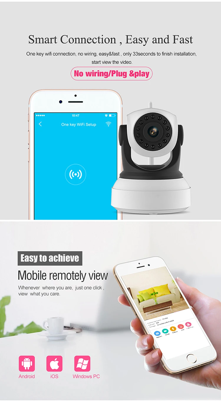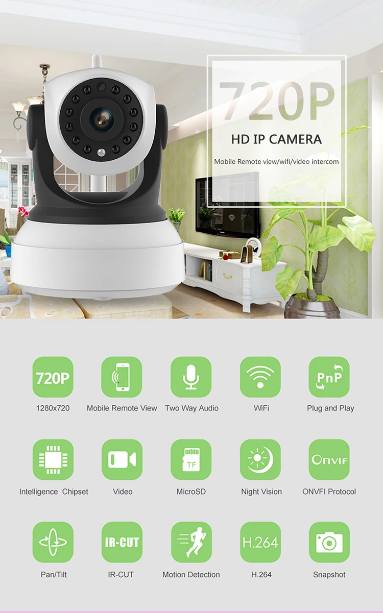 Беспроводная ip-камера PUAroom HD Wi-Fi для ночного видеонаблюдения