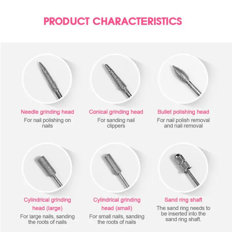 1 Набор электрическая дрель для ногтей набор USB зарядка маникюрная Машинка для педикюра 6 бит шлифовальная буферная пилка для ногтей ручка для дизайна ногтей