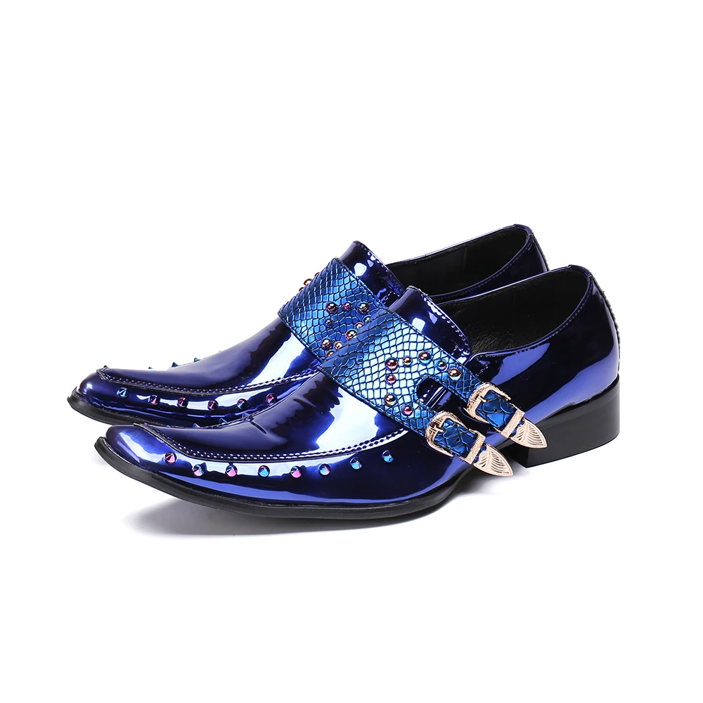 Мужская обувь в стиле Кристиа Белла; Повседневная Роскошная обувь из натуральной кожи; Цвет синий; Торжественное платье; Свадебные броги с пряжкой и ремешком; Zapatos HomBre