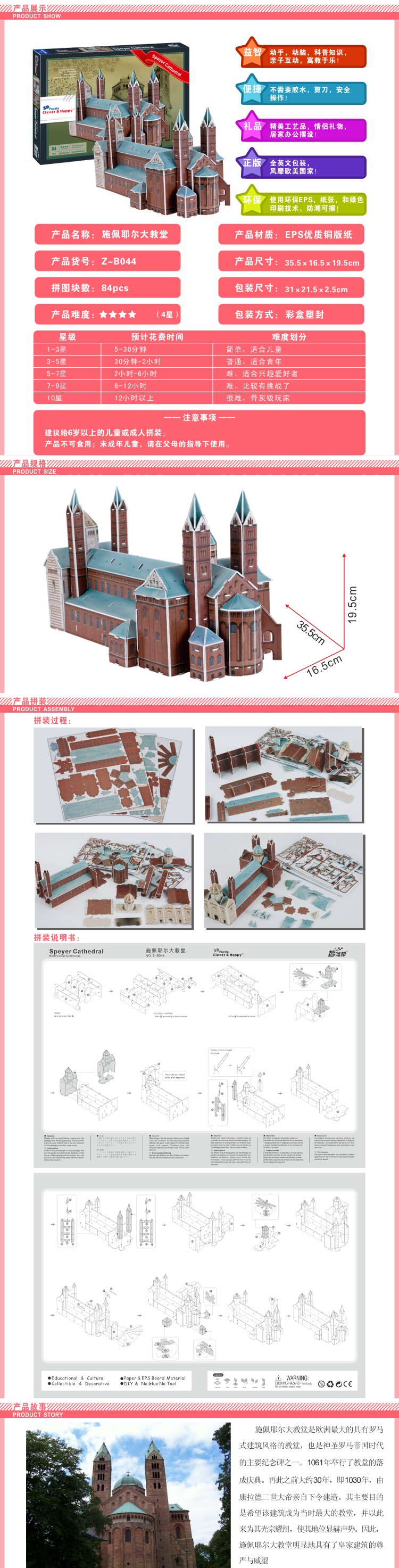 3D головоломка умный и счастливый Бумажная модель для сборки Сделай Сам игрушка Speyer tower подарок на день рождения Рождество 1 шт