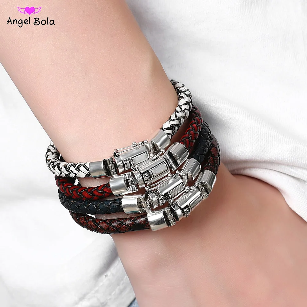 Мужские аксессуары, ювелирные изделия, браслеты из нержавеющей стали, Набор браслетов Будды, мужской браслет в стиле панк, плетеные кожаные браслеты, браслеты