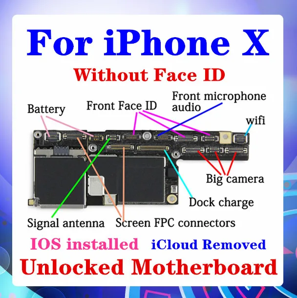 Материнская плата для iPhone X без распознавания лица 64 Гб 256 ГБ Разблокирована без функции лица IOS с чипами для iphone X Мобильная материнская плата