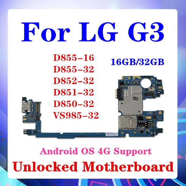 100% Оригинальные разблокированные для LG G3 D855 D850 логические платы для LG G3 D855 D850 D851 D852 VS985 материнская плата Android система 16G/32G