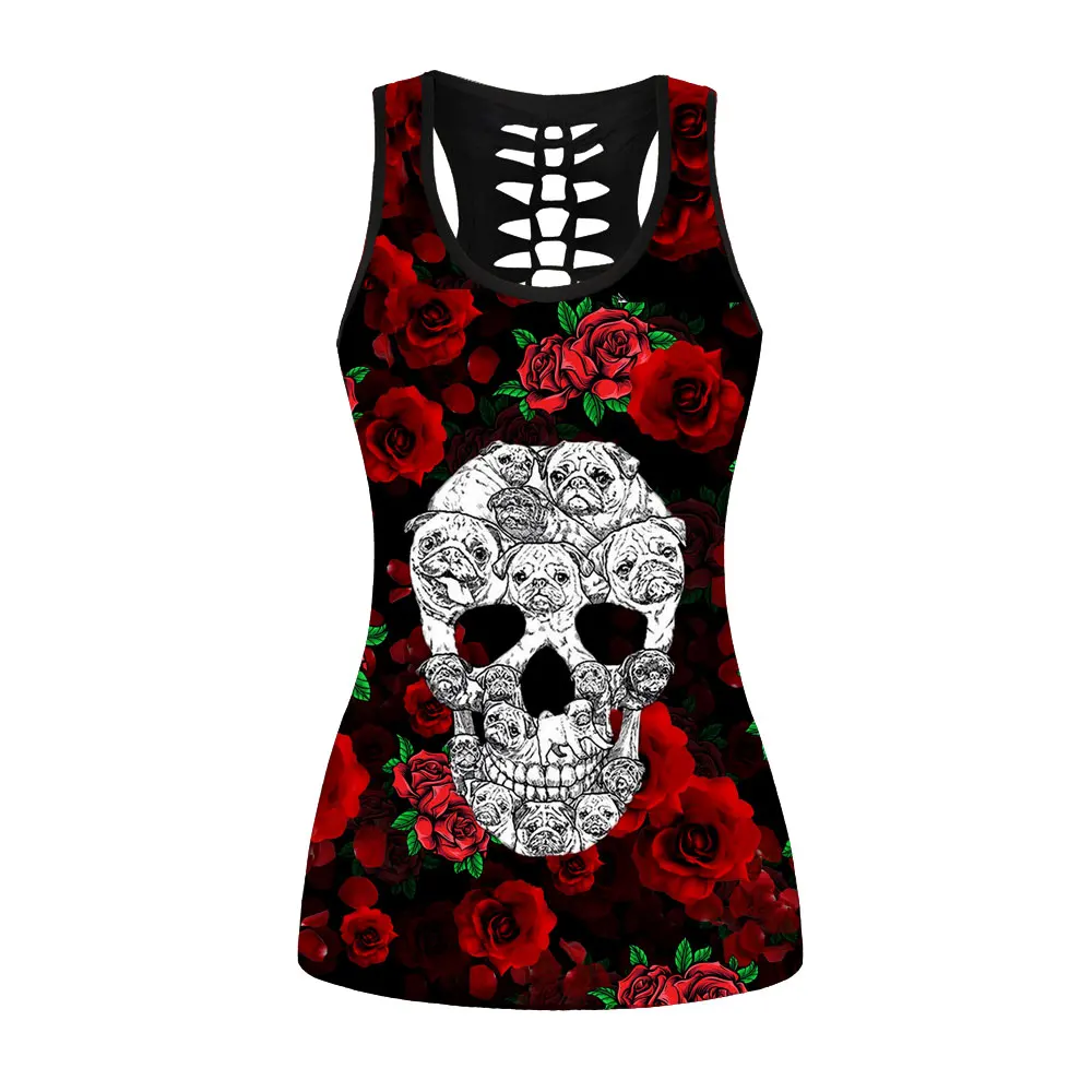 Новый S до 4XL размера плюс Harajuku с принтом черепа женский черный жилет 5 узоров без рукавов спортивные топы для бега
