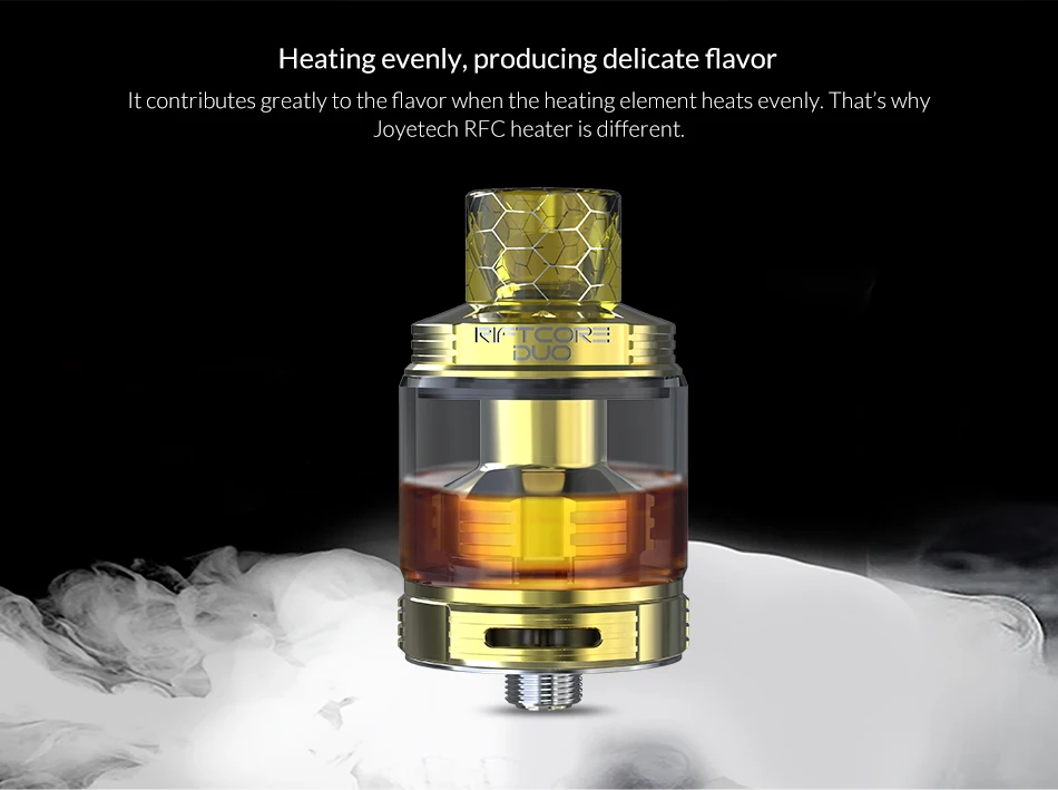 Это значительно способствует аромату, когда нагревательный элемент нагревается равномерно. Вот почему обогреватель Joyetech RFC отличается.