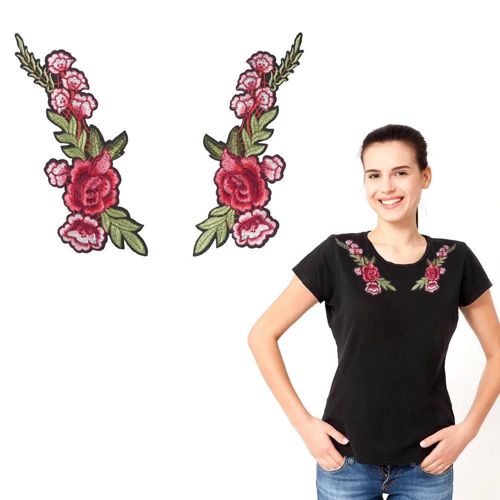 Cool Rose Iron on Patches - Surpdeco Iron on Stickers Embroidery Patch Heat Transfer DIY Applique Accessories for Clothes Bags