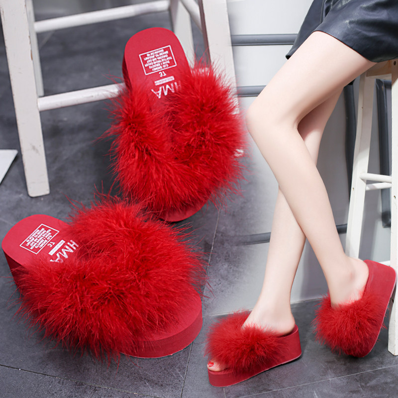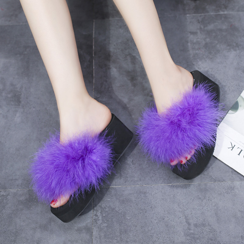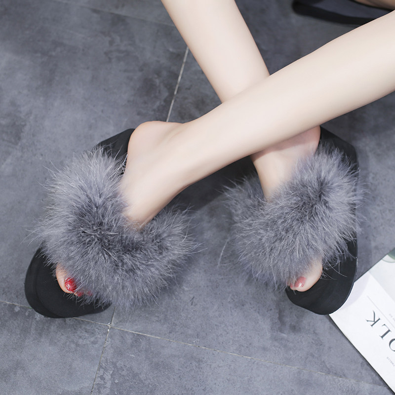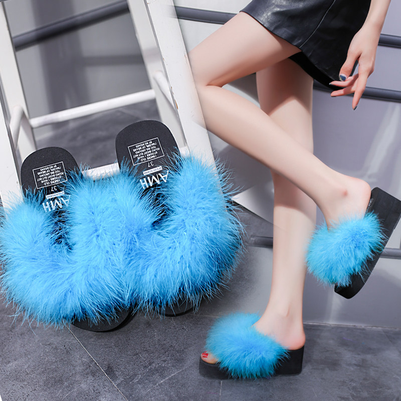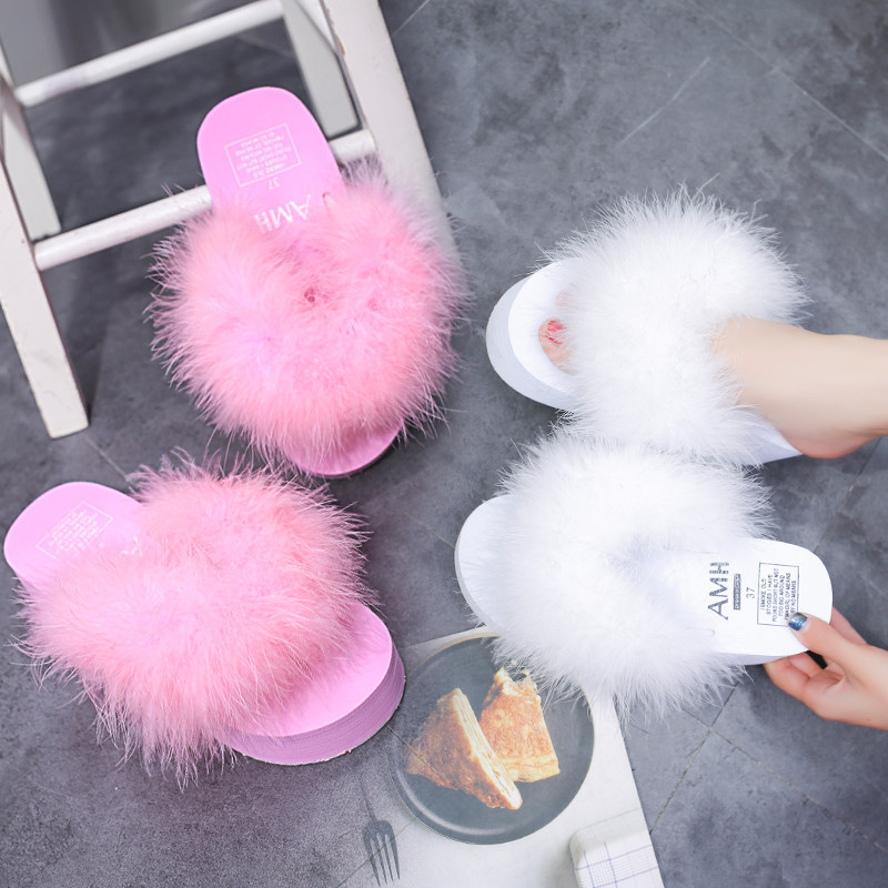 2018Летние брендовые меховые тапочки; Женские пляжные сандалии
