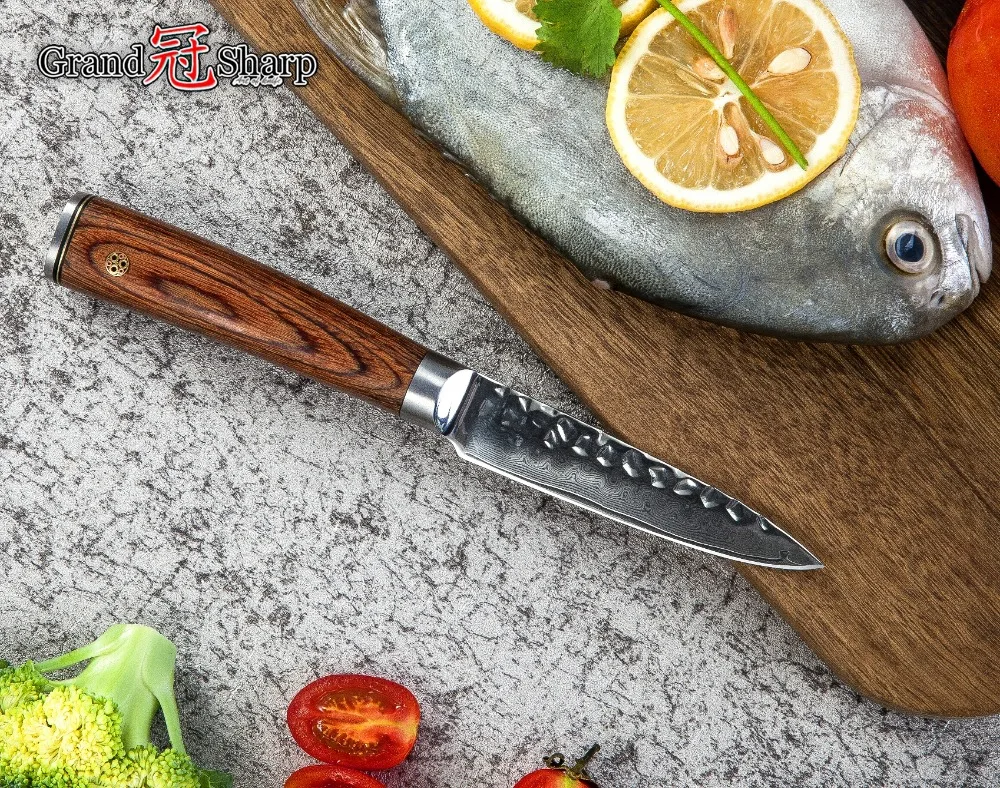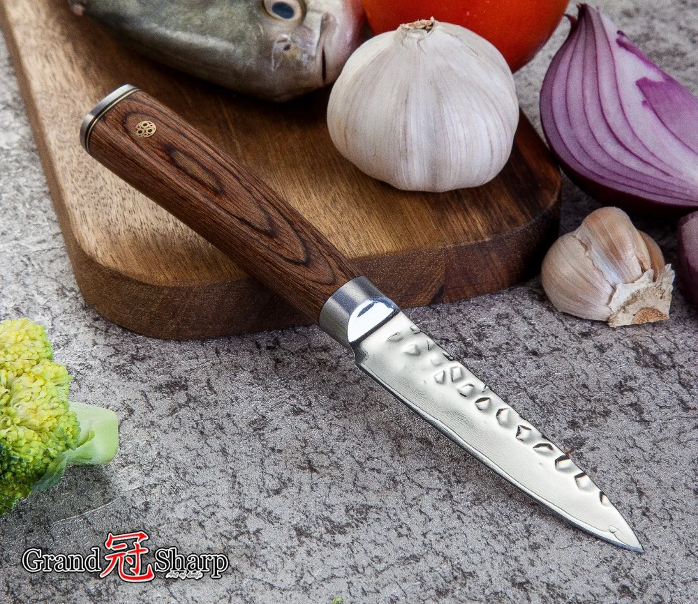 Толщина:2,2 мм.3,5 дюймов нож для очистки овощей Ножи:Длина: 205 ммДлина лезвия: 90 ммШирина лезвия: 20 ммТолщина: 1,8 мм.СделаноОт 67-слой дамасской Сталь импортируется из Японии. VG-10 Сталь режущий ядро; 33-слой Нержавеющая сталь Сталь SUS430 & SUS431 на каждой стороне обеспечивают работу Совместного; HRC 60-62 твердость.Ручка Изготовлен из PAKKA, который является прочным, нескользящим, легко моется, водонепроницаемый, устойчив к бактериям, удобный и красивый.Экспресс-Доставка: