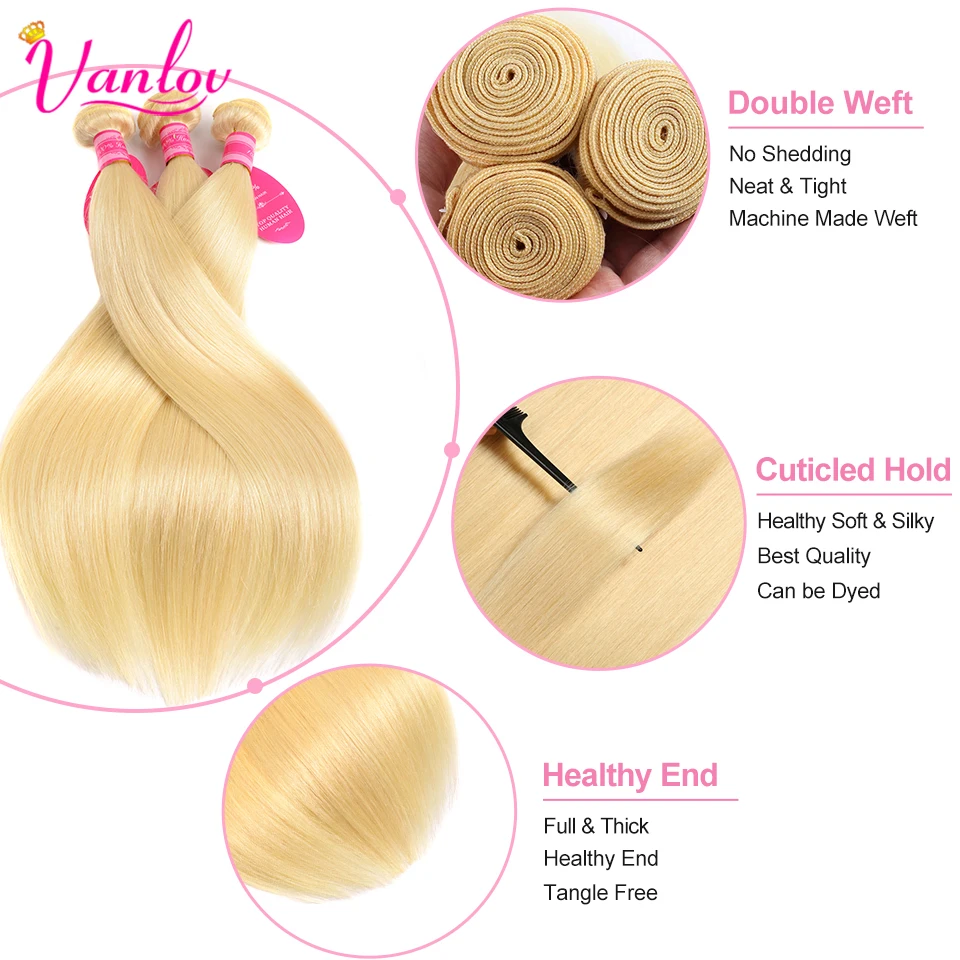 Vanlov 613 блонд пряди с закрытием бразильские волосы плетение пряди с закрытием прямые человеческие волосы пряди с закрытием Remy