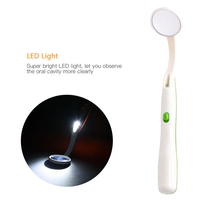 Стоматологическое зеркало для полости рта светодиодный яркий светильник ed многоразовое зеркало для осмотра рта с светильник антипротивотуманный угол изгиба ABS Ручка Прочный стоматологический инструмент для ухода за полостью ртаСВЕТОДИОДНЫЙ Прибор для проверки зубаСветодиодный светильник для орального использования резиновое в пластиковой ручке зеркало для зубовСтоматологическое зеркало для рта, зеркало для осмотра зубов с ярким светодиодный светильник для ухода за зубами Стоматологическое зеркало:С ручкой ABS и кнопкой переключения, простота в эксплуатации. Посмотрите на зубы и проверьте наличие зубного налета.Зеркало анти-туман. Супер яркий светодиодный стоматологическое зеркало, позволяет четко наблюдать за зубами.Это многоразовое использование после стерилизации, но только для одного человека для предотвращения перекрестной инфекции и поддержания санитарных условий.Резиновая кнопка переключения, используйте 3 батарейки. Внимание:Потяните бумагу на ручке перед использованием!Цвет: желтый и зеленыйДезинфицируйте его спиртом, не высокая температура!Открутите винт на ручке при замене новой батареи!Супер яркий светодиодный светильник с зеркалом для рта, позволяет четко наблюдать за зубами