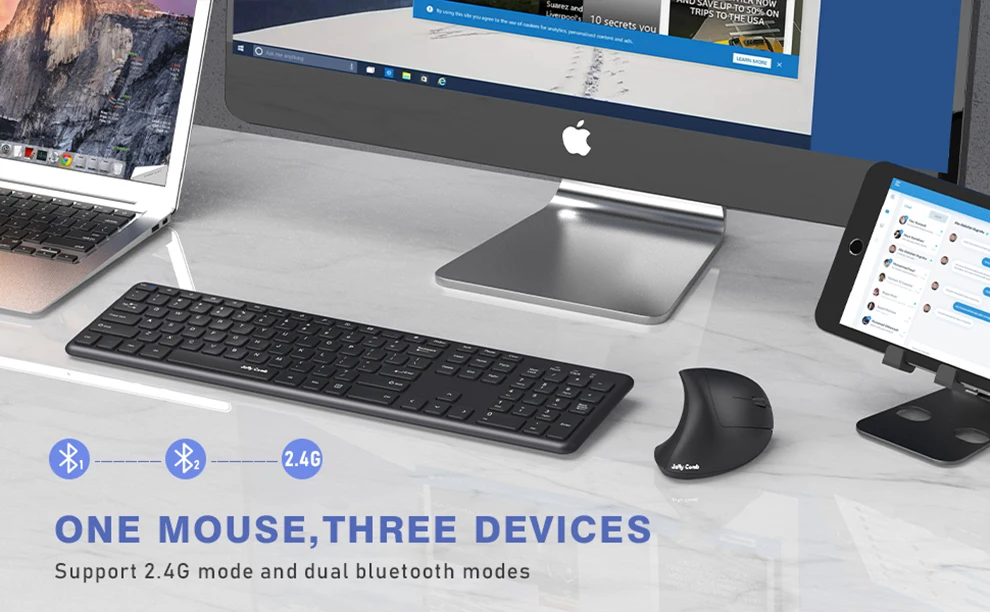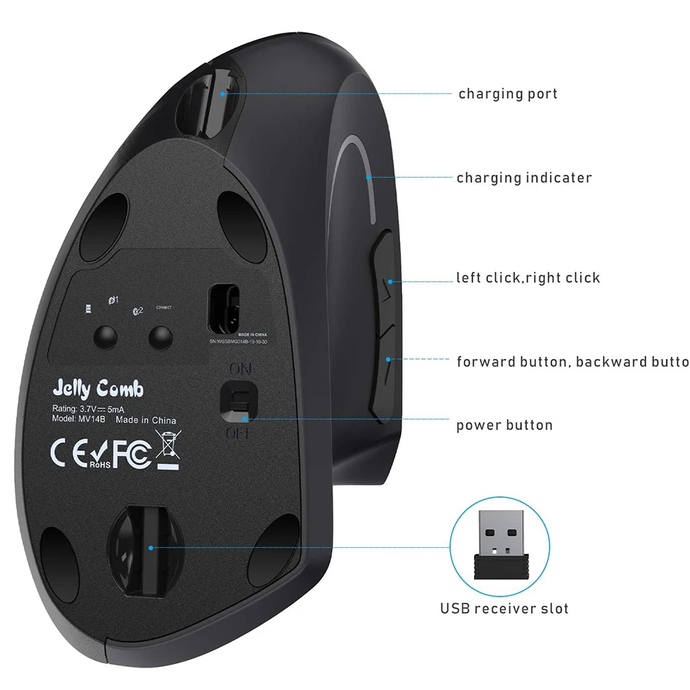 Характеристики Bluetooth + 2,4G мыши Напряжение: 3,7 в Двигатель: Оптика Рабочее расстояние: 10 м Уровень DPI: 1000-1600-2400 DPI Размеры: 120*63*76 мм/47,24*24,8*29,92 дюйма Посылка 1 x беспроводная мышь 1 x USB-приемник 1 x USB-кабель для зарядки 1 x Руководство пользователя Особенности: Эргономичный дизайн: оснащен упором для ладони, большого и мизинца, что обеспечивает лучшую поддержку и удерживает руку в естественном положении, эффективно снижает напряжение запястья и боль. Тройное подключение: благодаря двойным режимам Bluetooth и беспроводной технологии 2,4G мышь подключается одновременно до 3 устройств, таких как компьютер Windows, MacBook и планшет Android. Просто нажмите одну кнопку, вы можете свободно переключаться между тремя устройствами. Перезаряжаемый: Встроенный перезаряжаемый литий-ионный аккумулятор, легко подзаряжается через входящий в комплект USB-кабель для зарядки, не нужно менять аккумулятор. Эта мышь автоматически засыпает через 15-20 минут бездействия для экономии энергии и может быть встряхнута любым щелчком. Боковые кнопки и бесшумный щелчок: добавленные далее/предыдущие кнопки обеспечивают удобство при просмотре веб-страниц. Мягкий щелчок, меньше шума, позволяет вам оставаться сосредоточенным на работе, не мешая окружающим. Широкая совместимость: работает с Windows 8/7/10/XP/2000, Mac OS 10,10 или более поздней версии (Примечание: боковые кнопки вперед/назад недоступны на MAC OS). Подключи и работай (USB-приемник хранится в задней части мыши). Особенности только bluetooth-мыши: Беспроводная технология: Bluetooth Расстояние беспроводной связи: 10 м Размер: 125*81*71 мм Размер изделия: 123,69*67,91*61,58 мм Вес: 157 ± 5g Вес нетто: 102 ± 5g Номер ключа: 6 Разрешение: 800/1200/1600dpi Рабочие циклы: 1000000 циклов Аккумулятор: AAA * 2 (не входит в комплект) Материал: АБС + матовое масло Системные требования: Windows 2000/ 2003/ ME/ XP/ Vista/ Win7/ 8/ 10/ MAC OS/ Linux