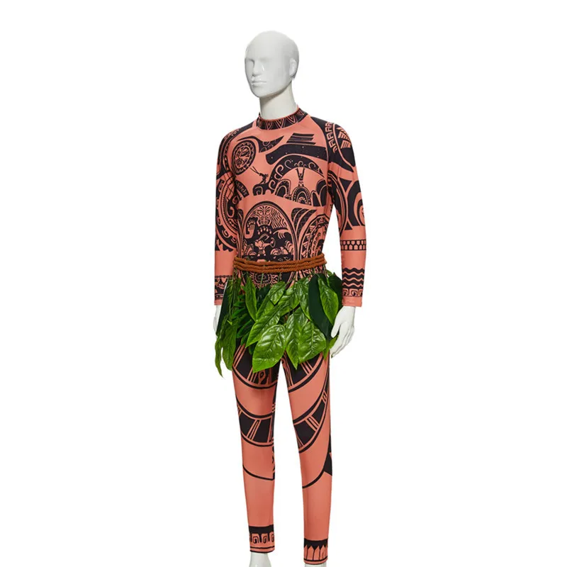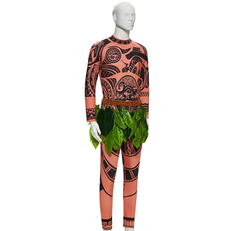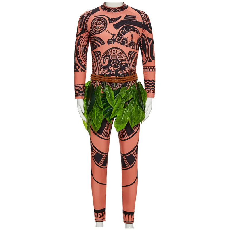 Moana Maui/футболка с татуировкой, штаны для Хэллоуина, для взрослых, для мужчин, женщин, детей, мальчиков, детские костюмы для костюмированной вечеринки с декором в виде листьев, для Хэллоуина