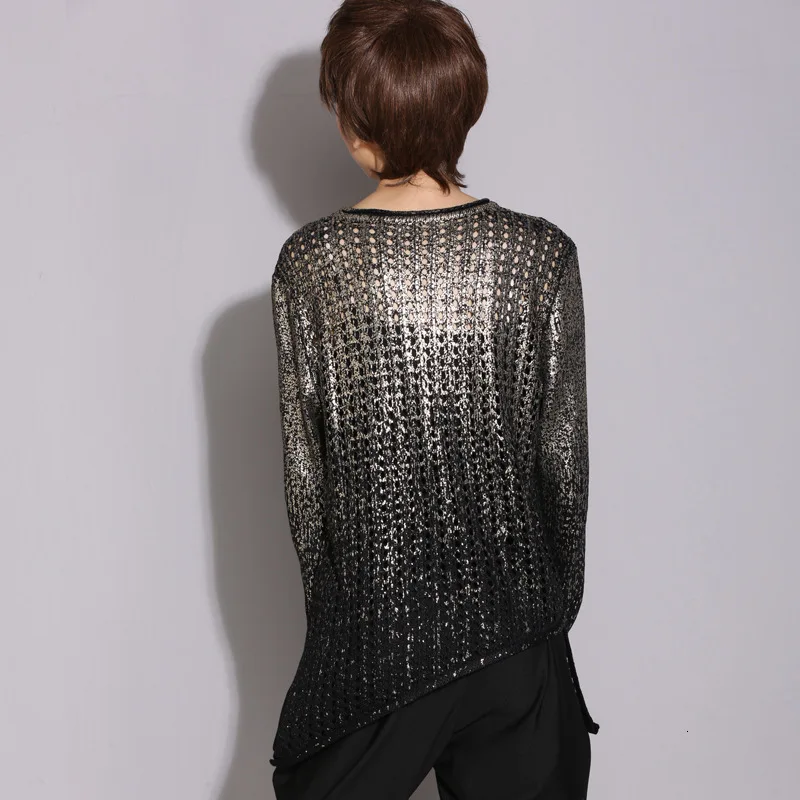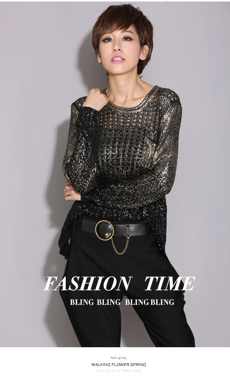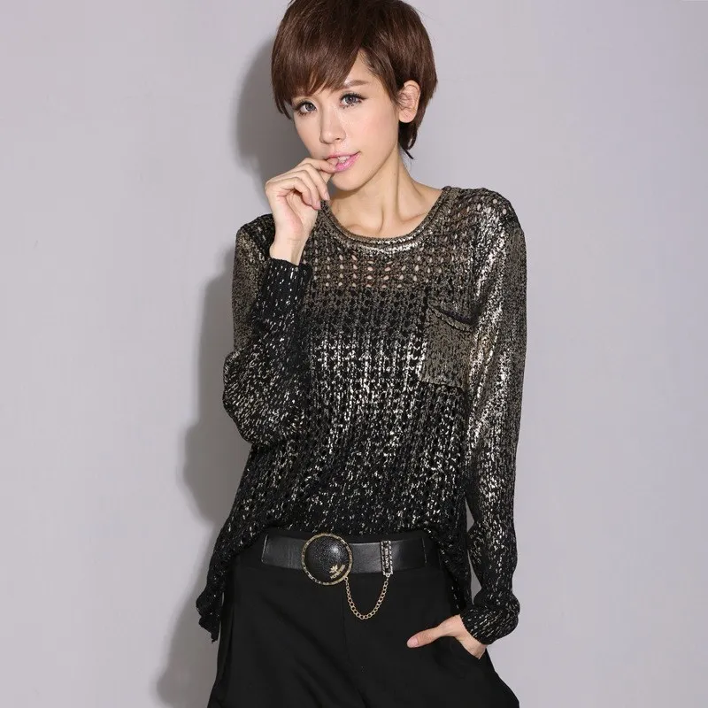 Fashion Korean Style Gold & Silver Sexy Holes Sweater