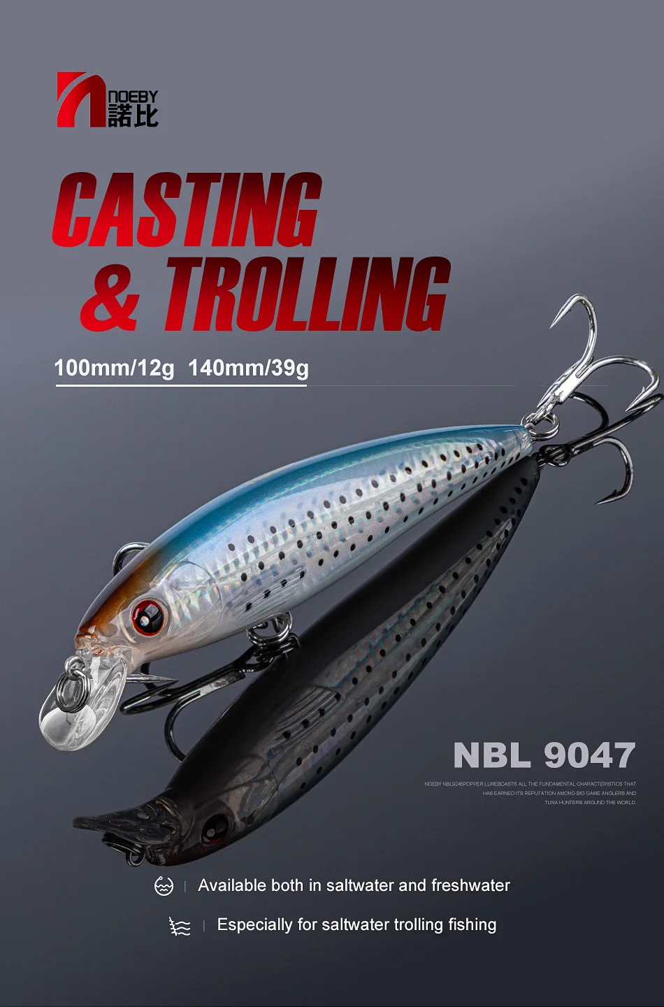 NOEBY Троллинг на маленькую рыбешку рыболовная приманка 140 мм 40 г плавающая твердая приманка с тройными крючками VMC NBL9047
