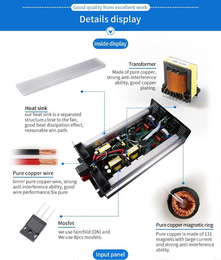 7. Настраиваемое входное напряжение, такое как 36 В, 72 в, 96 в, 110 В и т. д. выходное напряжение, такое как 120 В, 130 в, 200 в, 240 В и т. д. доступны различные виды розеток. |