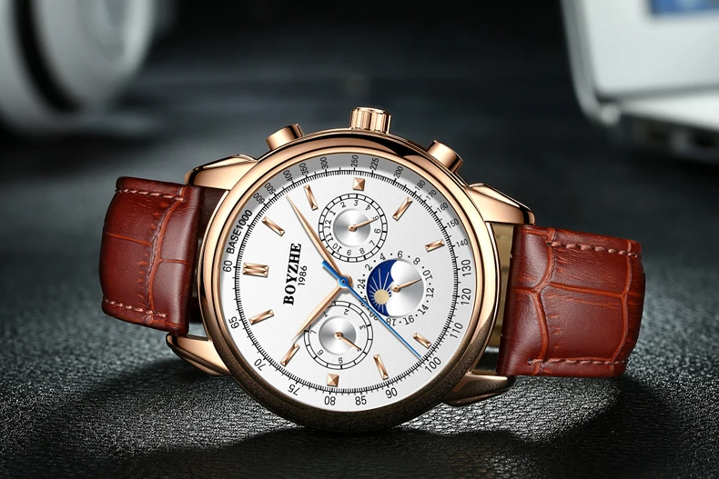 Мужские полностью автоматические механические часы BOYZHE, Модные Военные часы с кожаным ремешком, роскошные повседневные часы оригинального бренда, мужские часы
