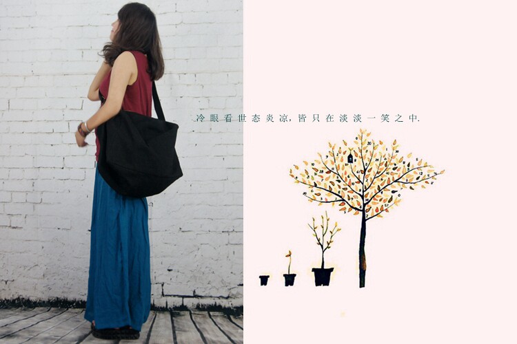 Женские большие холщовые сумки, Хлопковые женские сумки ручной работы, повседневные сумки через плечо, оригинальный дизайн, винтажные сумки красного и черного цвета