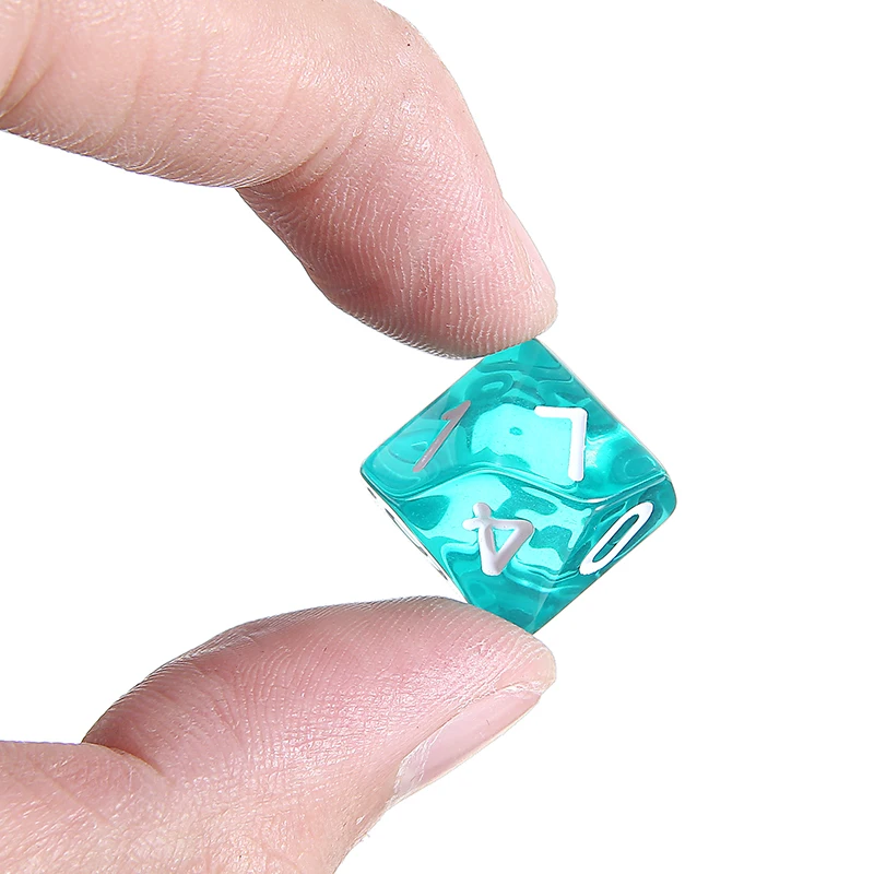 Каждый цвет поставляется с 7 различными игральными костями: 4, 6, 8, 10, 12, 20 сторонних игральных костей и процент (%) игральных костей.