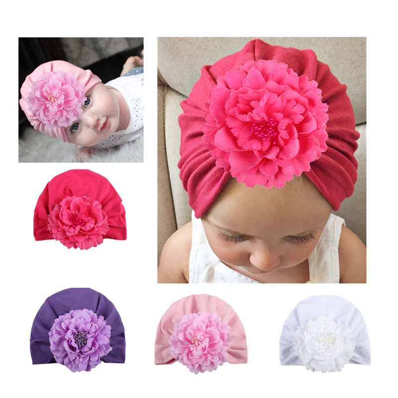 * Описание товара: милая мягкая хлопковая шапочка с большим цветком для новорожденных девочек; шапочка