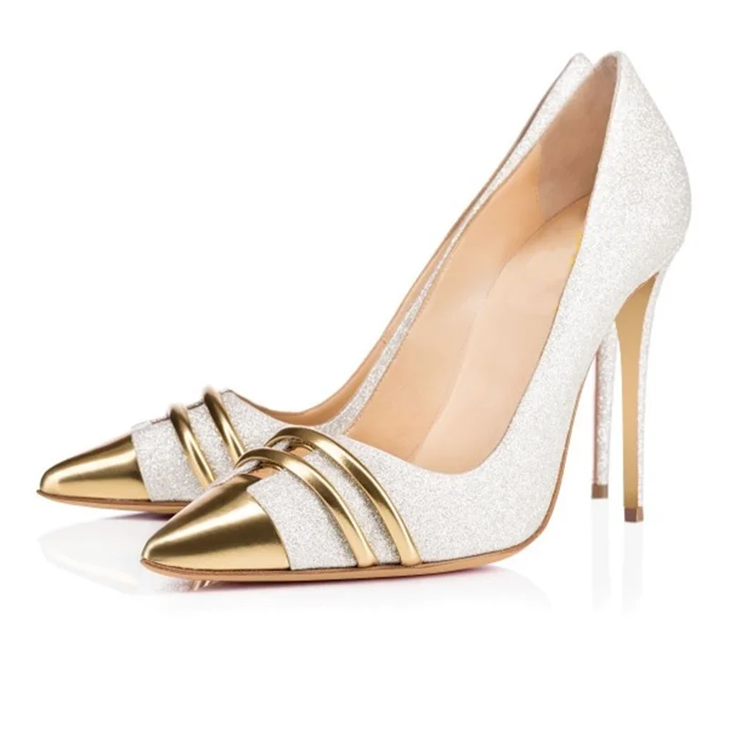 Серебристые блестящие женские туфли; Золотые туфли с острым носком на высоком каблуке-шпильке; Вечерние свадебные туфли