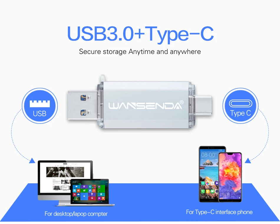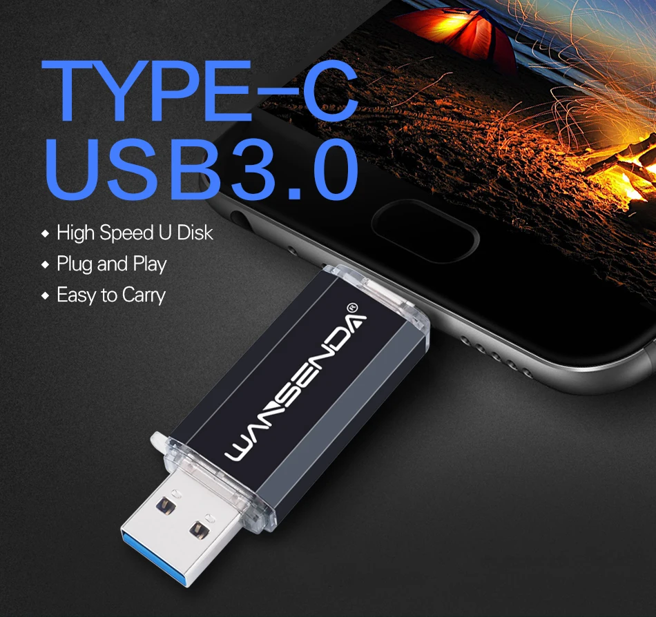 USB флеш-накопитель WANSENDA Type C OTG Usb 3,0 для мобильных телефонов Type-C/PC 512 ГБ 256 ГБ 128 Гб 64 ГБ 32 ГБ 16 ГБ высокоскоростной usb-накопитель