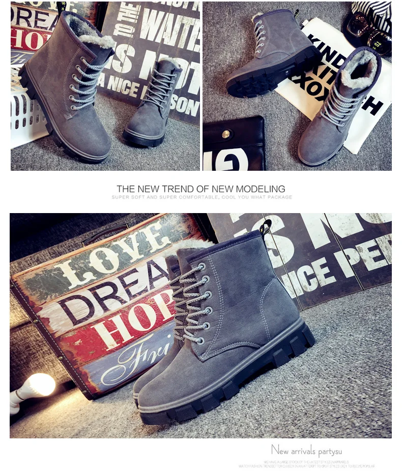2018 женские ботинки; зимняя теплая плюшевая обувь на меху; женские зимние ботильоны; удобные ботинки Martin из хлопка; Botas Mujer; ботинки на плоской подошве в байкерском стиле