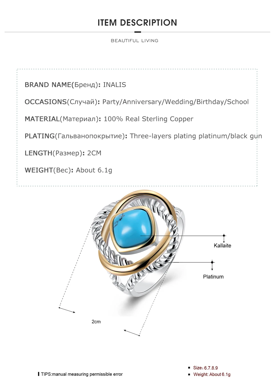 Название брендаINALISНомер моделиGEMR014ФункцииOtherПроисхождениеКитайМатериалКаменьПолДля женщинСтильTRENDYТип товараКольцаСобытиеВечеринкаТип металлаМедьФорма/узорGEOMETRICМодное/качественноеМодаСовместимостьПолная совместимостьТип кольцаОбручальные кольцаТип инкрустацииЦыганская закрепкаШирина поверхности20 ммЕдиница измерения100000015Количество1Material100% Real Sterling CopperPlatingThree-layers plating platinum/black gunColorGold,Black GunMosaicKallaite StoneGenderFor Women and GirlsOccasionsWedding,Party,Anniversary,Gift For GirlfriendSaferHypoallergenic and Wear ComfortableCustomizeAccepted, contact us get more details and discountWholesaleAccepted, contact us get wholesale priceWarranty100% Sterling Copper, if not, full Refund