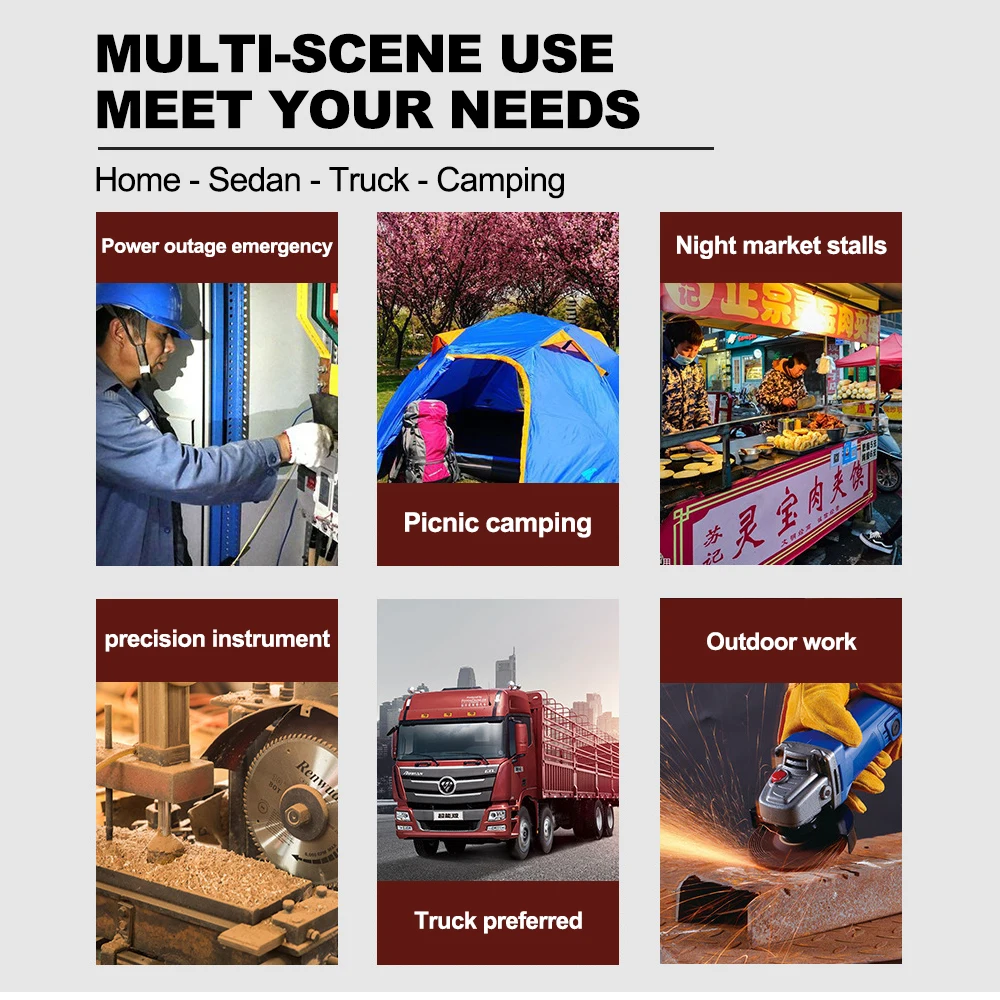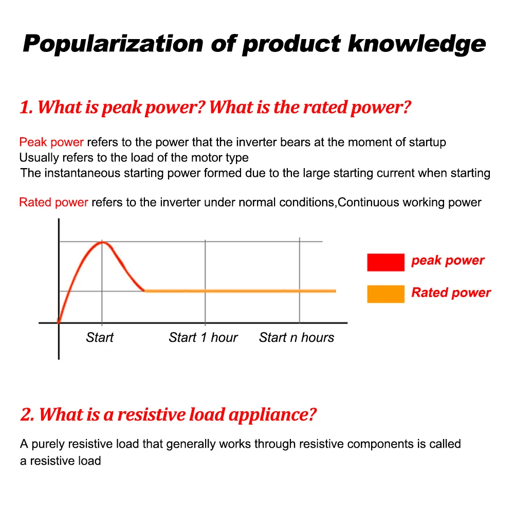 Фен и т. д. с мотором внутри. Пожалуйста, убедитесь, что постоянная мощность нашего инвертора отвечает вашим потребностям перед заказом, или проконсультируйтесь с нами для получения более подробной информации. E. g. Пусковая мощность ледокола мощностью 150 Вт будет достигать 10000 Вт.