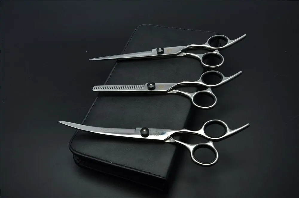 6,0/'филировочные ножницы * 1 шт., 7/' прямые режущие ножницы * 1 шт., 7/'изогнутые режущие ножницы * 1 шт. (изогнутые вниз), всего 3 шт.