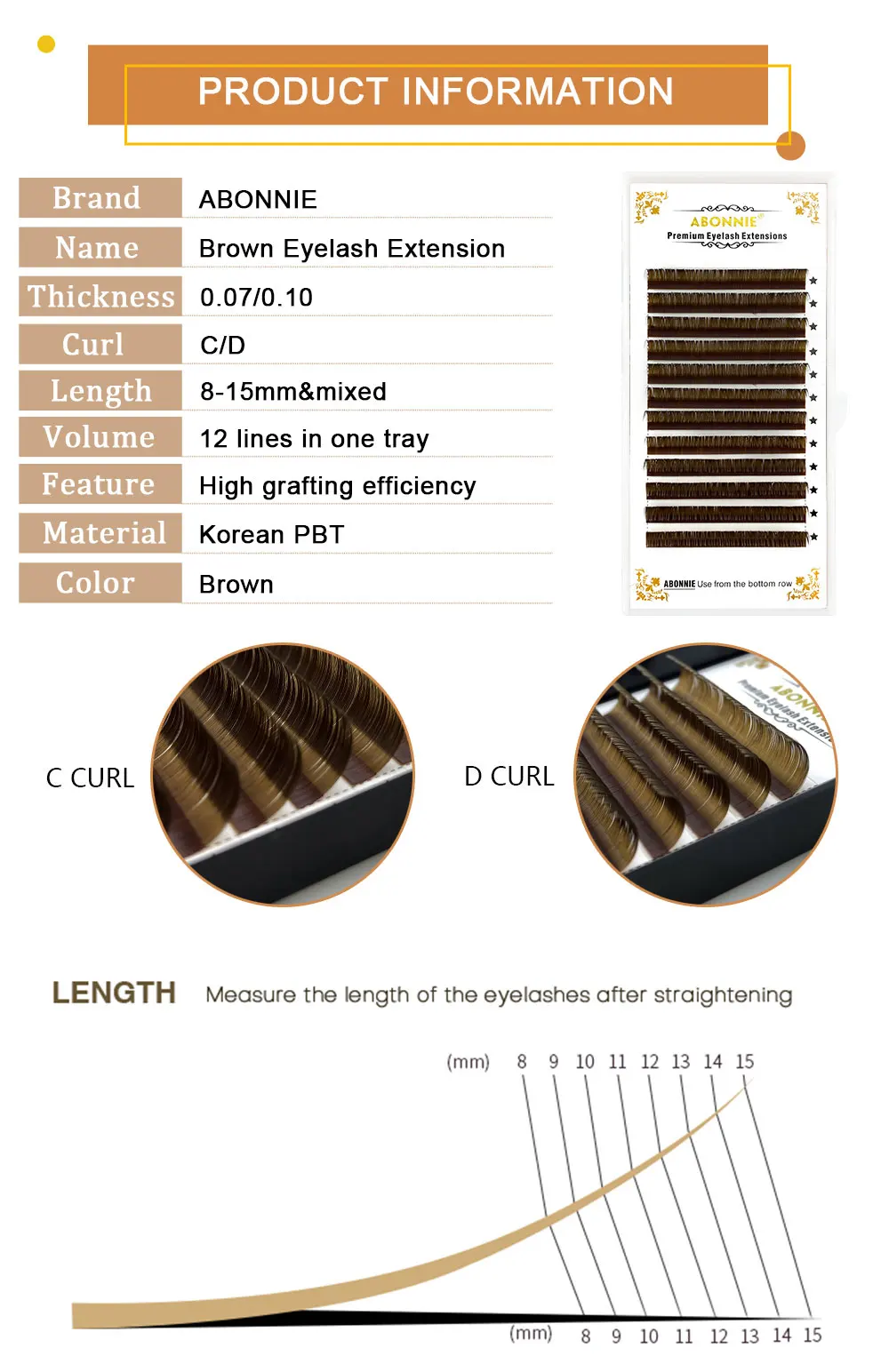 ★Абонни подсказка: собирайте купоны перед покупкой. ★Станьте нашим фанатом, чтобы получить дополнительные купоны. ---------------------------- О продукции: Фирменное наименование: Abonnie Стиль продукта: Индивидуальные ресницы Материал: корейское PBT волокно Упаковка: 12 рядов/лоток Толщина: 0,05-0,15 Длина: 8-15 мм/MIX8-15 Локон: C/D Цвет: коричневый Особенность: натуральный, мягкий, пушистый ---------------------------- ▲В наличии! Покупайте сейчас! ▲Quality Проверено ~! ▲ Лучшая цена ▲ Лучший сервис ▲ 100% гарантия удовлетворенности и гарантия высокого качества! Любые проблемы, когда вы получаете посылку, просто свяжитесь с нами, мы поможем вам решить их!