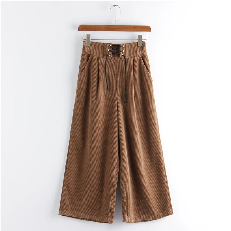 Зимние женские вельветовые широкие брюки 2018 осенние свободные брюки с эластичной резинкой на талии модные Свободные мешковатые теплые брюки A72307