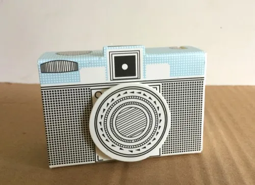Описание:(100 шт./лот) Уникальная Подарочная коробка для свадьбы и вечеринки для гостей камеры, розовая и синяя конфетная коробка для вечеринок