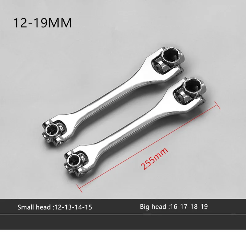 Многофункциональный Универсальный вращающийся многоголовочный торцевой ключ. Твердая хром-ванадиевая сталь, долговечный. Многофункциональный гаечный ключ «восемь в одном», две головки, вращение на 360 градусов. Хорошие инструменты для обслуживания. Размер: 255 мм * 40 мм/50 мм Материал: хромованадиевая сталь