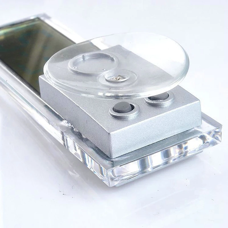 Часы имеют круглую присоску, которая может быть прочно адсорбирована на поверхности стекла.