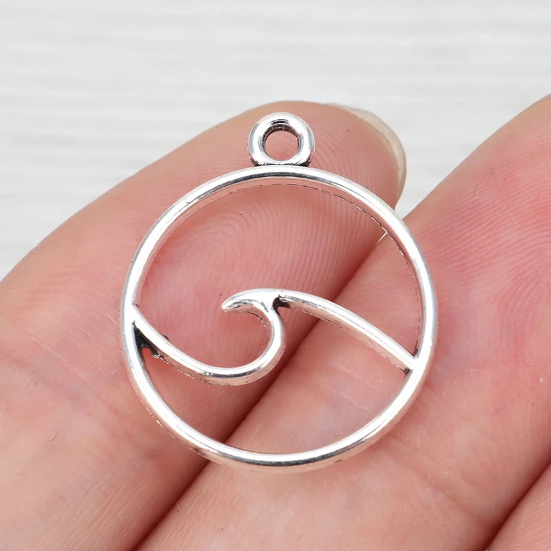 50 x Серебряный цвет ажурные волны океана круг круглые Очаровательные Подвески для бус для DIY ожерелье серьги изготовление ювелирных изделий 20 мм