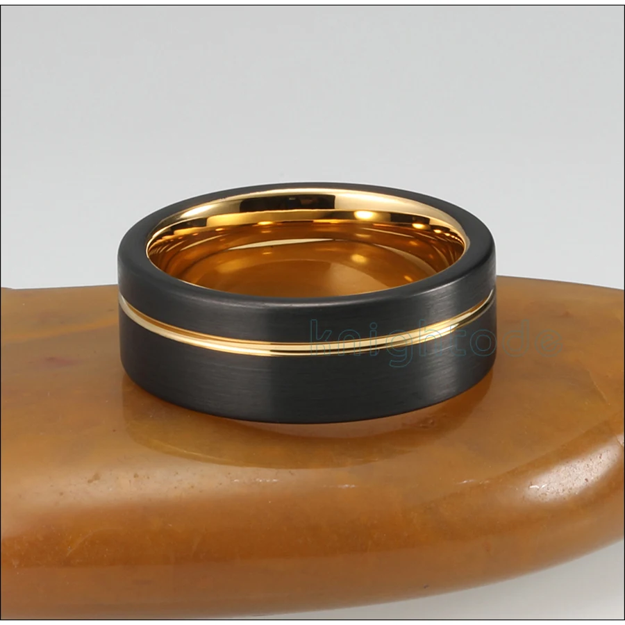 8 мм вольфрамовое кольцо золото и черный офсетная линия матовая отделка
