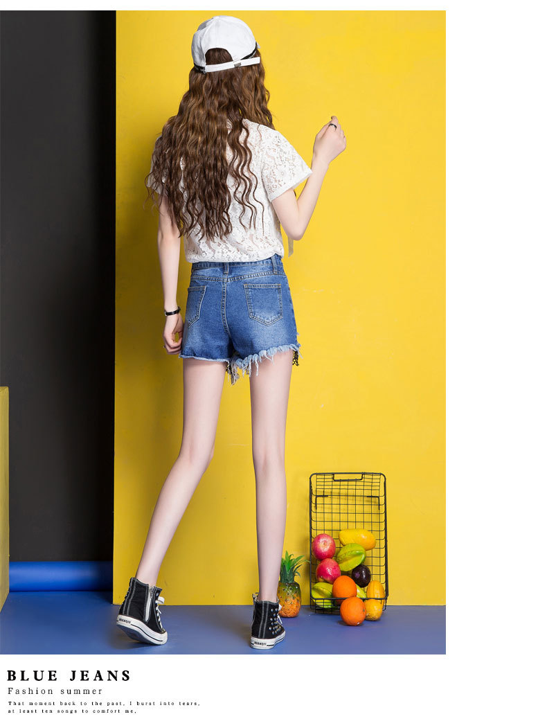 Women 2018 summer fishnet hollow out mesh hot pants with holes loose casual wide leg crochet jeans short denim shorts for female
