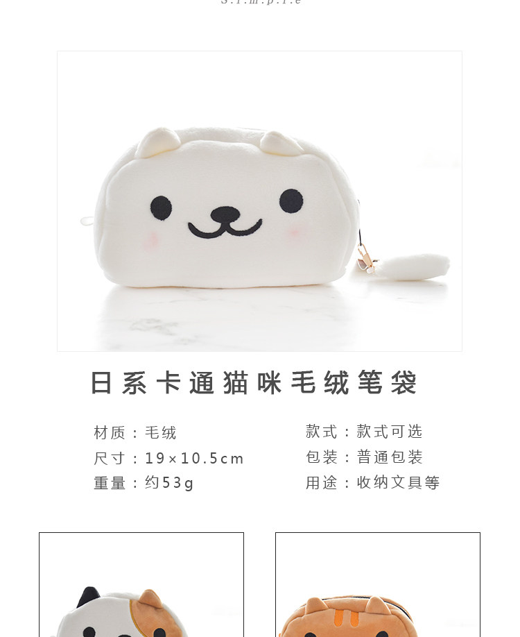 super cute plush toy lovely cartoon cat kitten soft pencil bag cosmetic bag storage pocket birthday Christmas gift 1pc