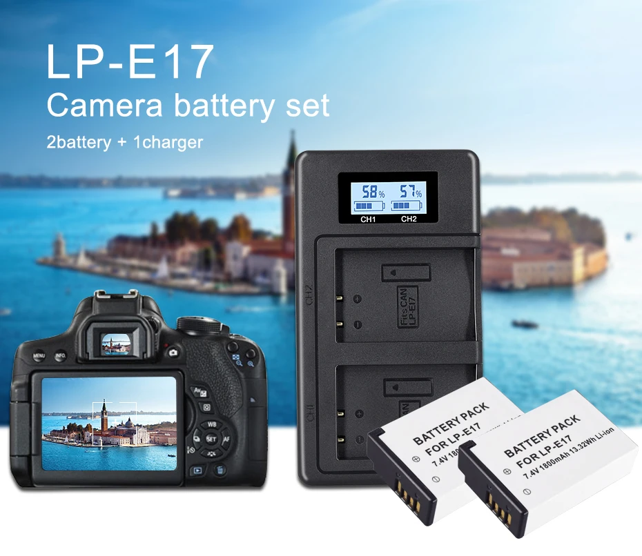 PALO LP-E17 аккумулятор в процессе обновления. Он покажет уровень мощности на Canon Rebel T6i, T6s, T7i, EOS SL2 ,750D, 760D, 77D , 800D, 8000D, камера EOS 200D KISS X8i Digita SLR (не включает в себя камеру Canon M Series s ) . Не отображает Срок службы батареи в камерах Canon Eos M3, M5, M6. Аккумуляторы должны заряжаться от зарядного устройства