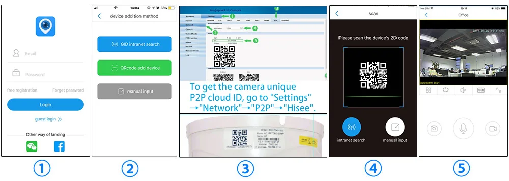 Зарегистрируйтесь и Войдите в систему, нажмите «+», чтобы добавить устройство и выбрать «Sweep add». Сканирование qr-кода в IE"HiSee"Или на корпусе камеры.